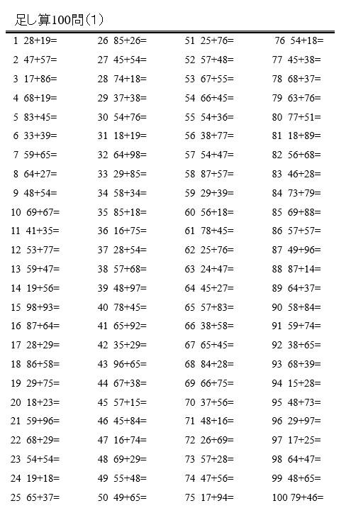 - 足し算・引き算ともに7分半ほどで解き終えられるスピード