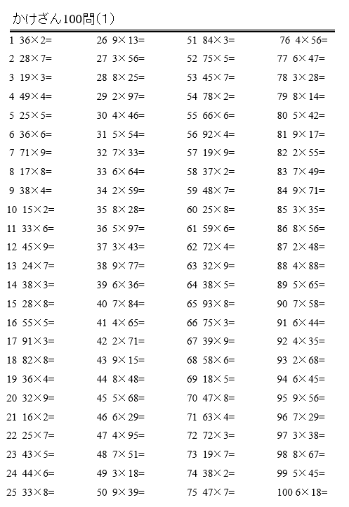 ↓↓小学生の計算100問テストです、毎週授業の冒頭で実施しており、記録をとることで計算力の伸びを図ることができます↓↓