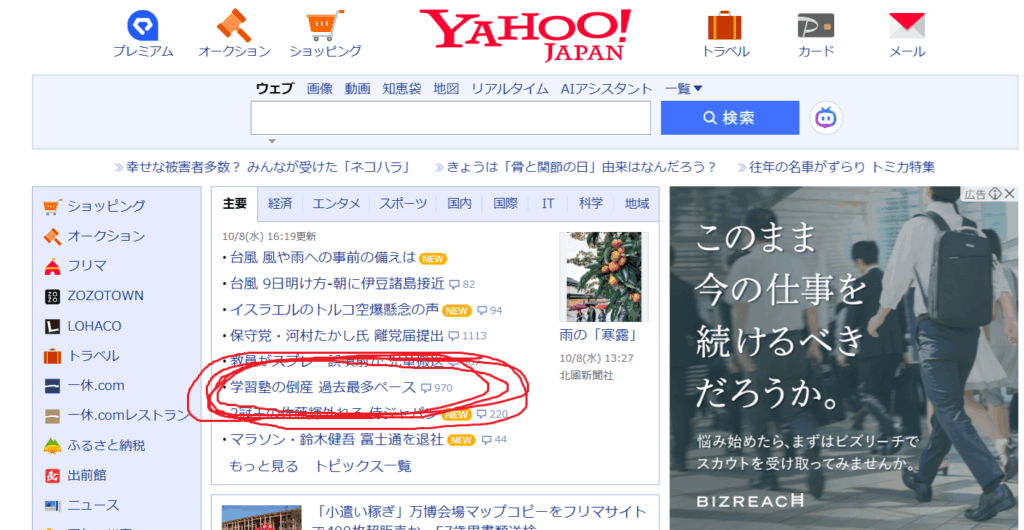 少子化の影響は学習塾だけでなく、国内を相手にするほとんどの企業にあてはまるため、人口増加とまではいかなく