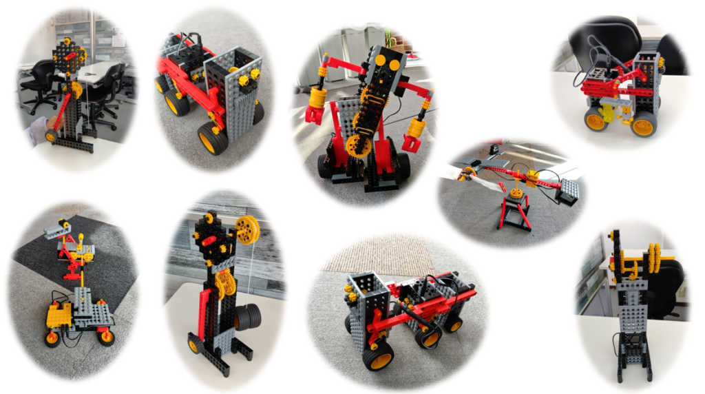 こちらはミドルコースのチクタクロックです。電池やモーターを使わずに、タイヤの重さで時計の針を進めています。