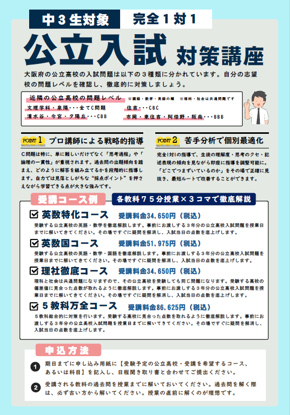 ※一教科につき教材費として別途500円(税込550円)を頂きます。