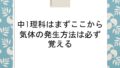 中1の理科では、覚えることと考えることの両方が必要になります。その中でも、まず早い段階で固めておきたいのが、気体の発生方法です。 ここは、理解しているつもりでも、実際に問題になると酸素と水素が入れ替わ…